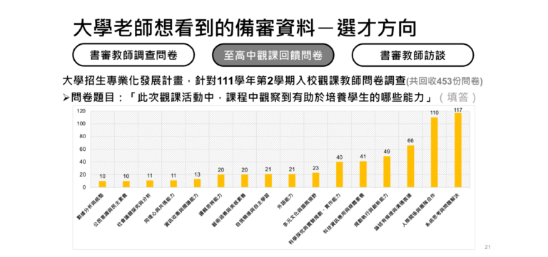 教育部「大學招生專業化發展計畫」進入第八年,發展計畫主持人、國立中山大學教育研究所的鄭雯教授,用團隊近年的研究資料表明:高中育才與大學選才肯定可以對接。